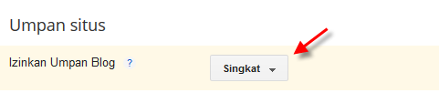 c. Pada “Izinkan Umpan Blog ” silahkan anda pilih “Singkat”, seperti terlihat gambar dibawah ini: