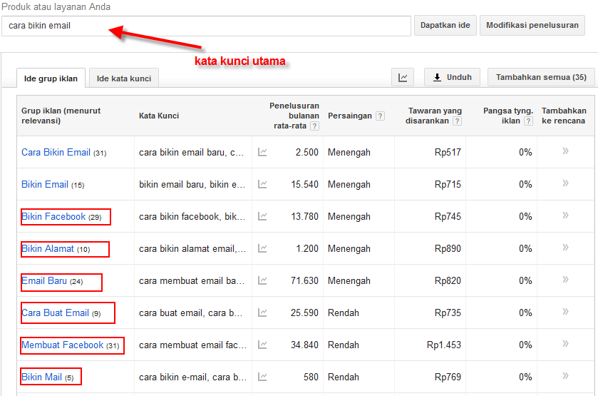 Untuk memakai dan menemukan kata kunci LSI dengan google adword keyword tool anda mampu baca artikel aku mengenai Riset kata kunci dengan google keyword planner. lakukan hal yang sama dengan memasukan kata kunci utama anda, jikalau hasil pencarian enampilkan lebih dari satu kata kunci lainnya, silahkan anda pilih dan gunakan kata kunci yang muncul tersebut sebagai kata kunci LSI untuk artikel anda.