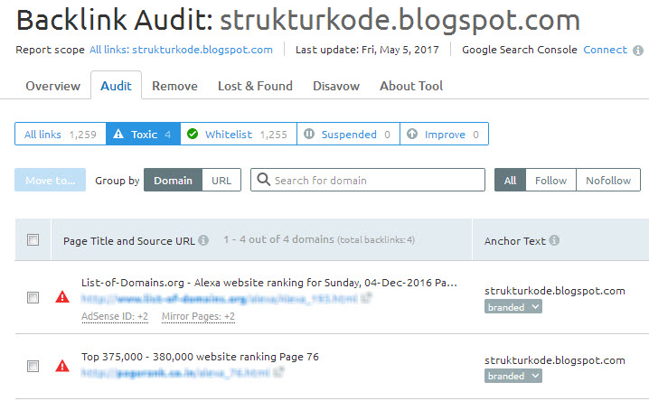 Langkah pertama sebelum melaksanakan disavow adalah kita harus tau backlink yang memperlihatkan efek buruk untuk blog kita, memang untuk beberapa backlink secara manual pun mampu kita identifikasi baik buruknya dengan melihat kritreria di atas, namun jikalau jumlah backlink yang harus kita analisa sangat banyak, akan cukup merepotkan.