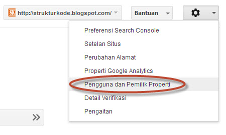 - Kemudian tekan tombol Roda gigi di samping kanan atas > kemudian pilih menu pengguna dan pemilik property