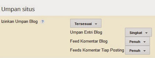 2. Pada Umpan situs, lihat label izinkan umpan blog? silahkan anda pilih menjadi Singkat.