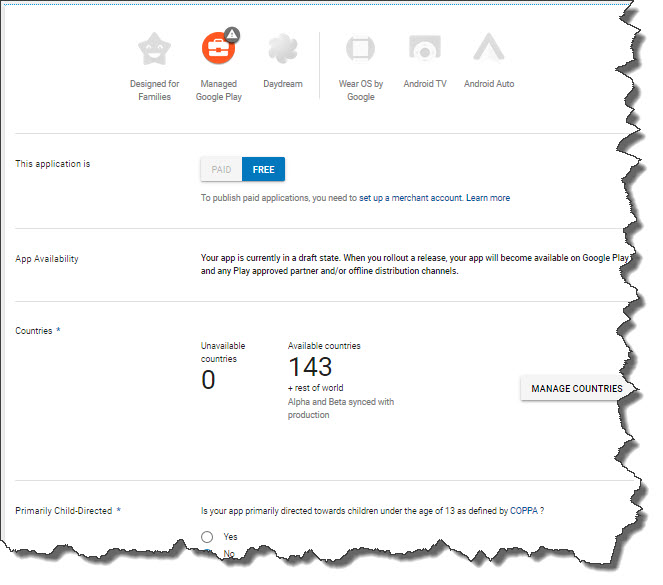 Pada bab ini anda akan diminta menentukan jenis aplikasi anda (gratis/tidak), dan juga memilih negara mana saja yang anda ingin aplikasi anda bisa didwonload. silahkan ikuti apa yang diminta, kalau sudah selsai tekan tombol Save draft.